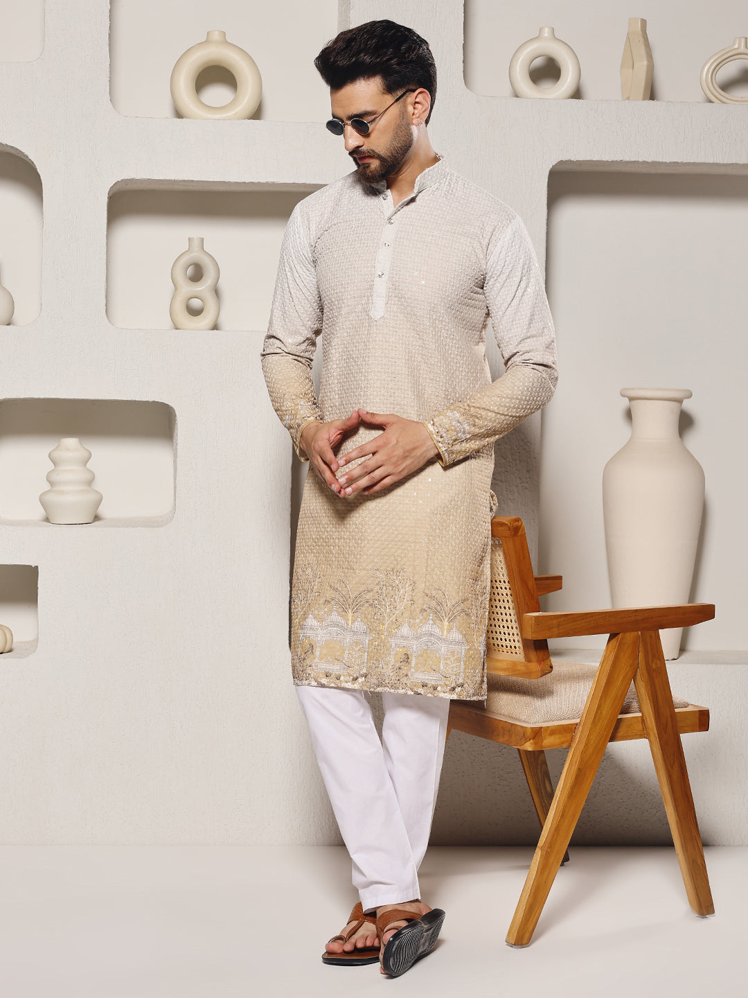 Brown-Grey bandhani Printed Kurta Plus Dupatta Set