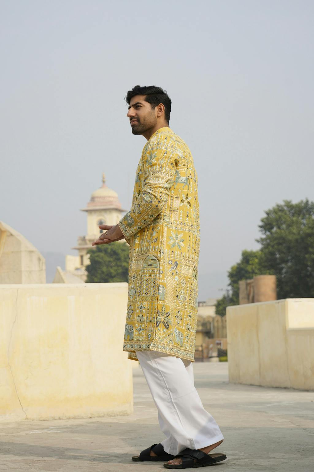 • Design: Straight-cut kurta with full sleeves and a classic mandarin collar
