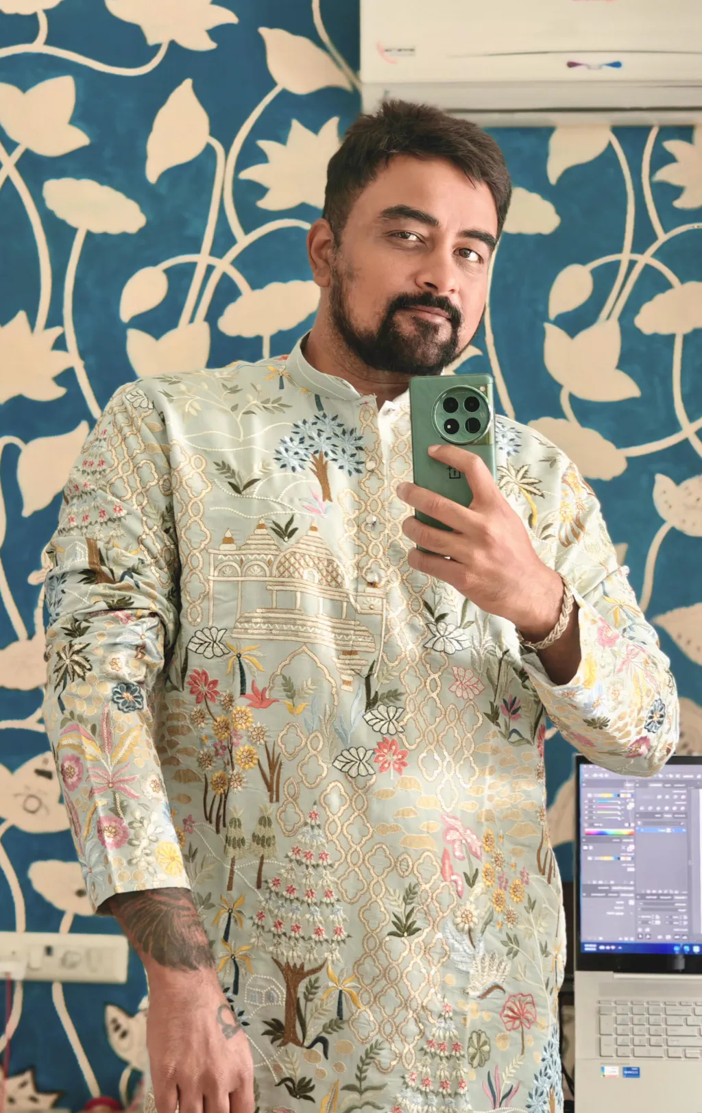 Radiate understated opulence with the Mint Celestial Embroidered Kurta, a masterpiece that captures Avnikk’s signature blend of artistry and refinement. The soothing mint hue forms the perfect canvas for intricate multicolor embroidery inspired by celestial motifs and blooming gardens — evoking grace, serenity, and festive grandeur.